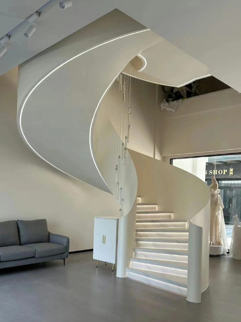 Steel is the ideal material for constructing helical stairs. It’s strong, durable, and allows for creative designs. The use of fluorocarbon paint for the surface finish offers numerous advantages. It provides a wide range of colors, enabling you to match the staircase to the overall interior design. The fluorocarbon coating is also highly resistant to weathering, corrosion, and fading, ensuring that your staircase will maintain its aesthetic appeal for many years.