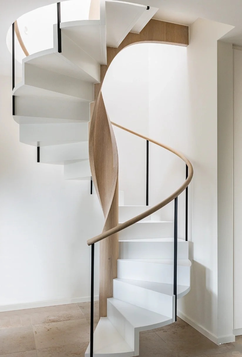 Minimalist spiral staircases are commonly build in modern homes, urban apartments, and small offices. They focus more on practicality and blending harmoniously with the overall space, rather than on opulent aesthetics.